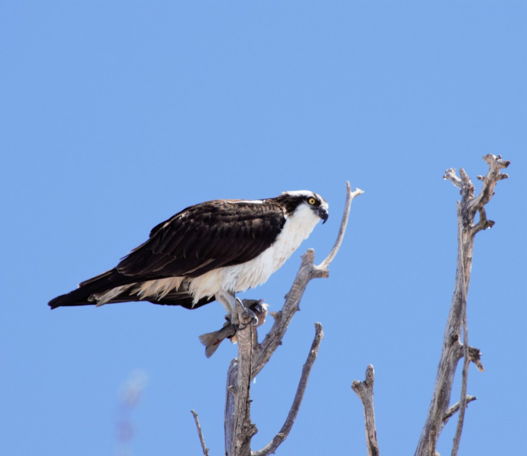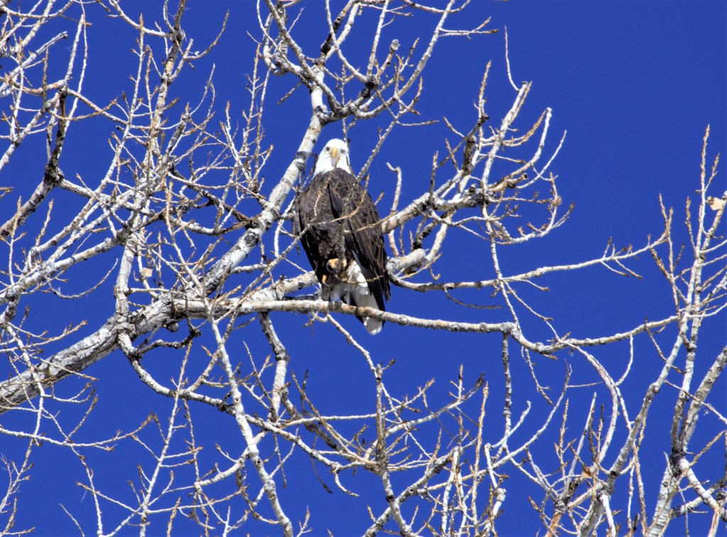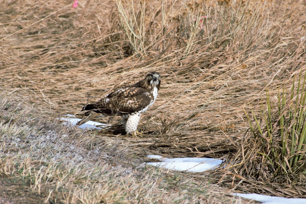 Raptors are birds of prey that eat meat or fish, they prefer to consume what they have just hunted rather than carrion but will do so if their food supply is constrained. While on WaltAbout year round I have been able to see owls, hawks, falcons and Americas national symbol the Bald Eagle. Some of the birds are permanent residents here while others are part of the great flocks that traverse the Central Flyway, which is larger than half the size of the mainland of the US. The raptors are at the top of their food chain and are a bell weather indicator of the health of the avian population in the region. Raptors like most predator’s follow their food supply. The Osprey you see to the left feeds mainly on fish. Knowing that I wait for fish and game to start stocking the local reservoirs and then go on WaltAbout there to get some photos, this system works out pretty good. One of the favorite prey of red-tailed hawks are Voles which are a mouse like rodent that they hunt in the open fields. Once that source is depleted the hawks will hunt for their prey near fast food restaurants. They are not dumpster diving but on the lookout for voles that are dumpster diving. Nature adapts to coexist with man!
