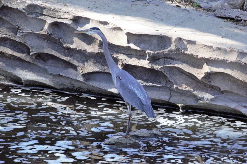 Mother Nature gave birds like some mammals the ability to restrict when they will digest their food. While on WaltAbout I have seen many animals catch or find their food. It is not always the quietest moment in the great outdoors and will attract competitors for the food and predators that will eat the bird! So birds have the ability to eat while on the move and digest in another place. Thermoregulation is a key to birds and all animals for that matter, the ability of an organism to maintain tolerable body temperature when air temperature changes. The great blue heron you see to the right is a great example as they are here year round.