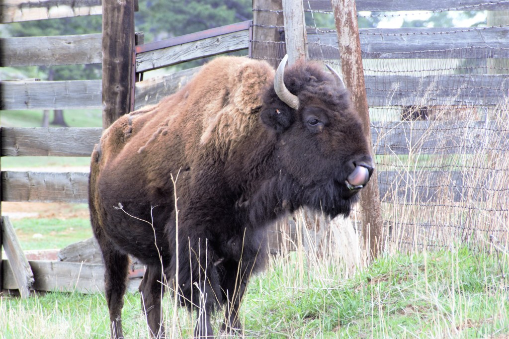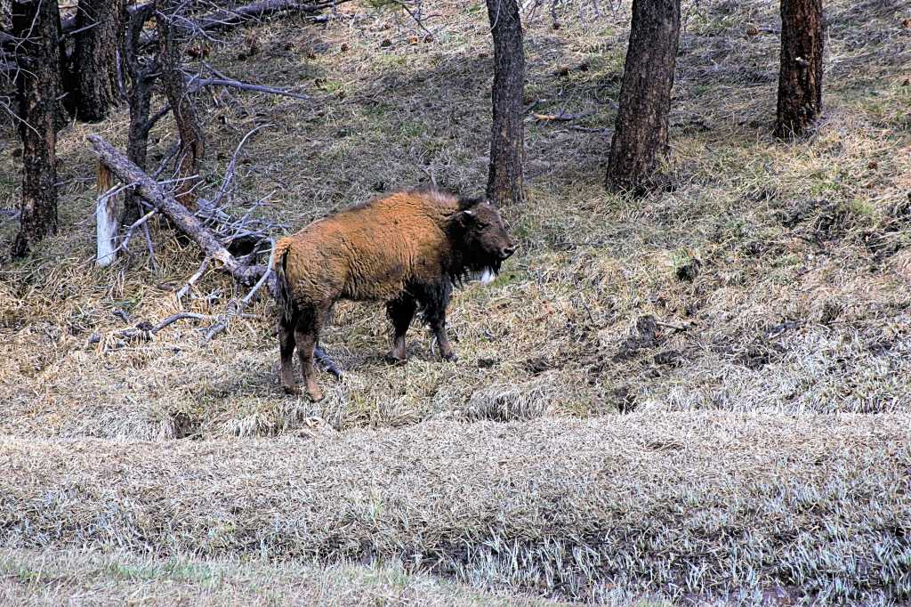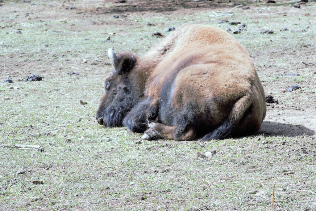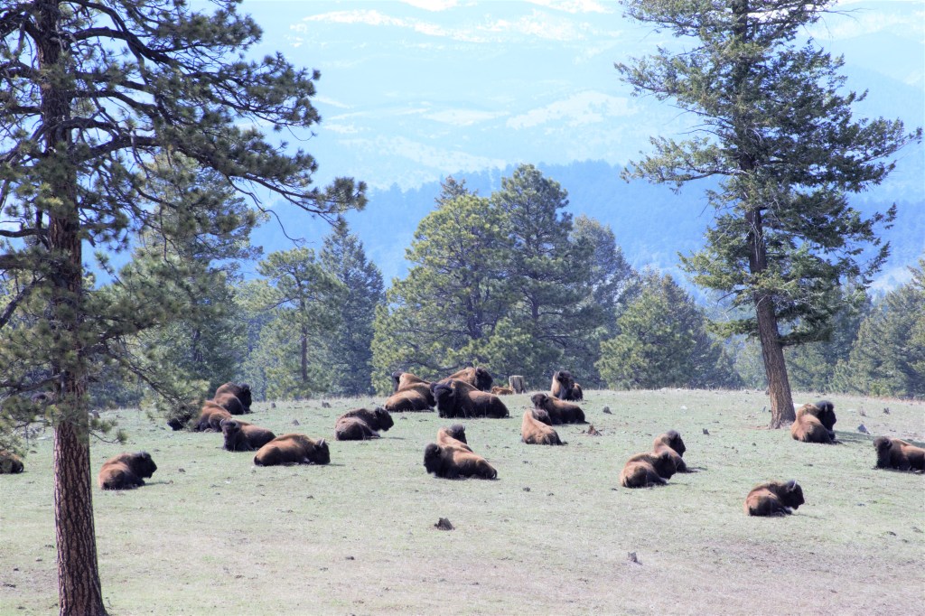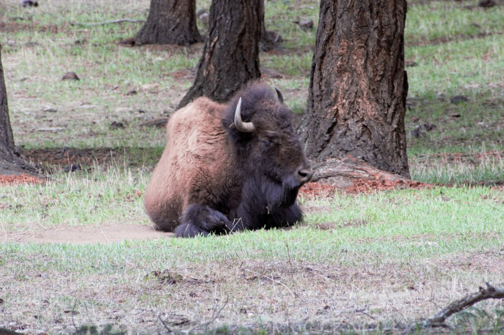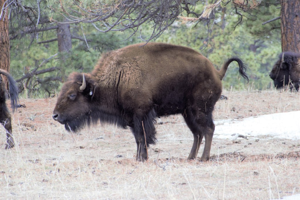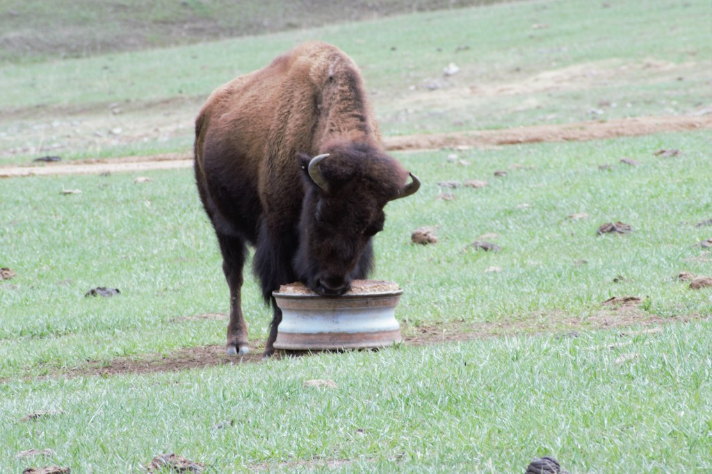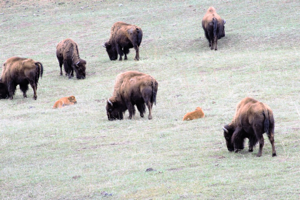 Buffalo spend most of their time eating, one of the reasons they are the largest mammals in North America and can grow in excess of 2000 pounds. They are generally mellow and will co-exist with other wildlife like deer and elk as shown in the picture above with an elk in a field with two of them as one is grazing and the other is rocking and rolling on it’s back. Never take it for granted that they are safe to approach or harass in any way, especially when they are mating or around those young red-dogs. They can run 30 miles an hour and are extremely agile as they can turn on dime.