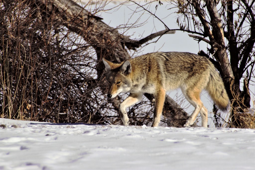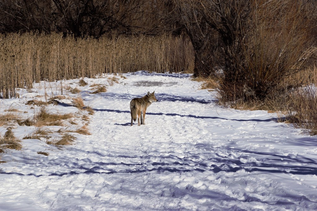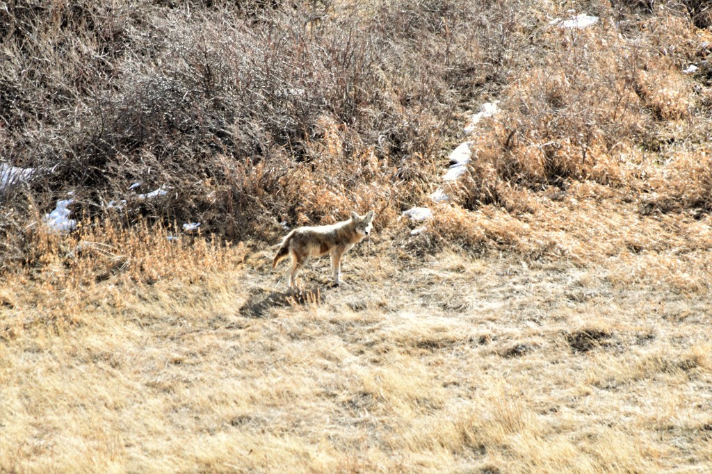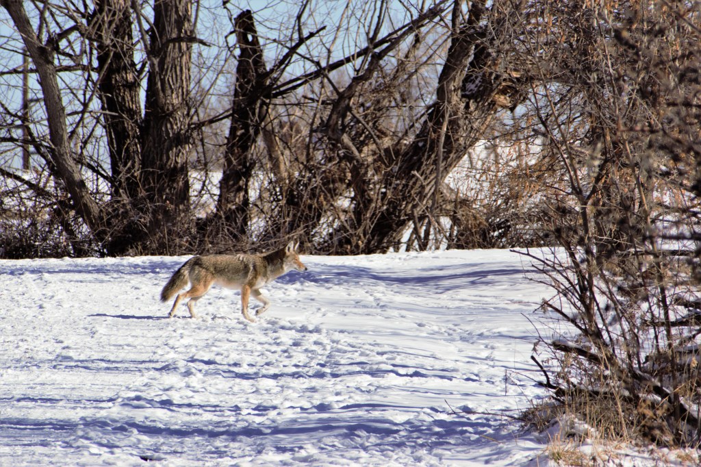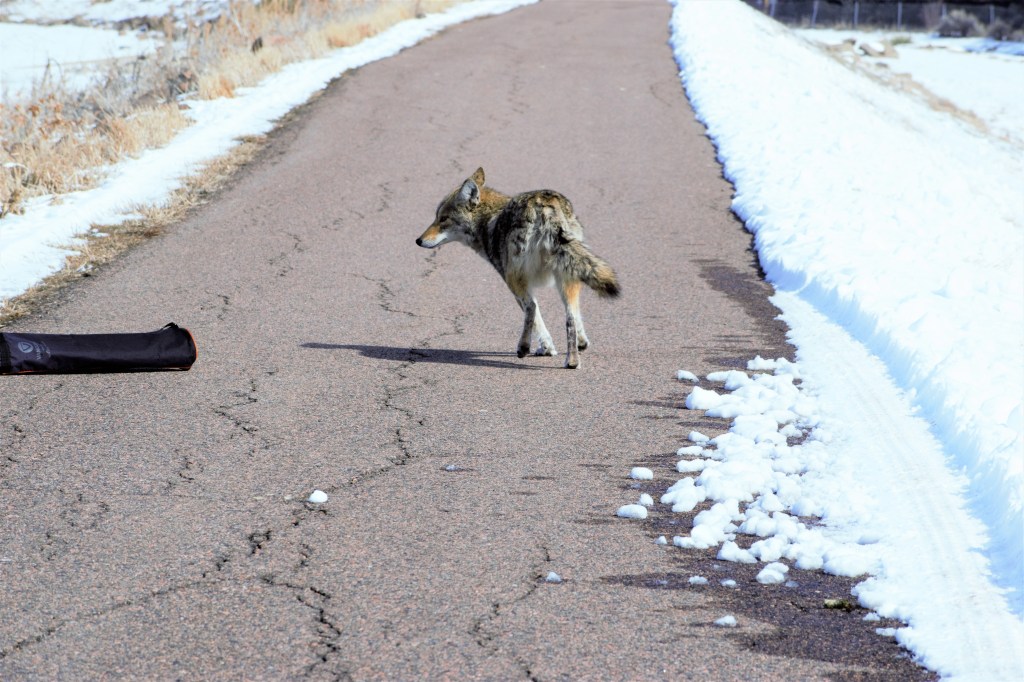As they hunt and scavenger the coyotes will at times approach humans this is more than likely the result of someone feeding them intentionally or unintentionally by leaving trash or not taking efforts to secure food they might have with them. They will also poach fish and game that has been bagged like most wildlife. When I go on WaltAbout to the reservoirs in the winter I generally take no food, as I only have to travel about 3 miles to get there. But I still have my head on a swivel as the wylie coyote is always on the hunt for a meal of opportunity.