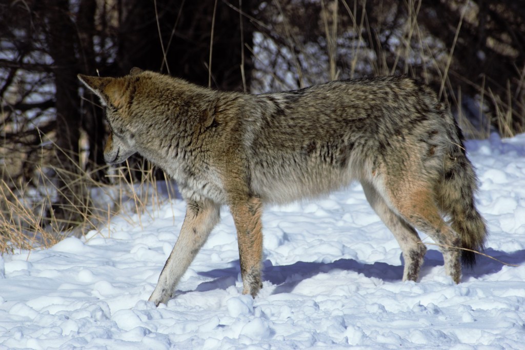 Coyotes have adapted to their habitat throughout North America. They are skilled predator’s that combine their cleverness to not only survive but also flourish in both urban and rural environments. While on WaltAbout I have seen coyotes foraging in open fields, meadows, parks and in the neighborhoods year round. But I have not seen them often, as like their cousins the red fox they are solitary creatures. One of the things I especially enjoy about the coyote is it’s howl. When they start vocalizing it is a mix of beauty and eeriness, I found the best time to hear the howls is around sundown. The coyotes are total scammers they use every trick they know to get a meal of opportunity. I learned to never leave bags untethered or open because the coyote will circle back and start scavenging my bike and gear.
