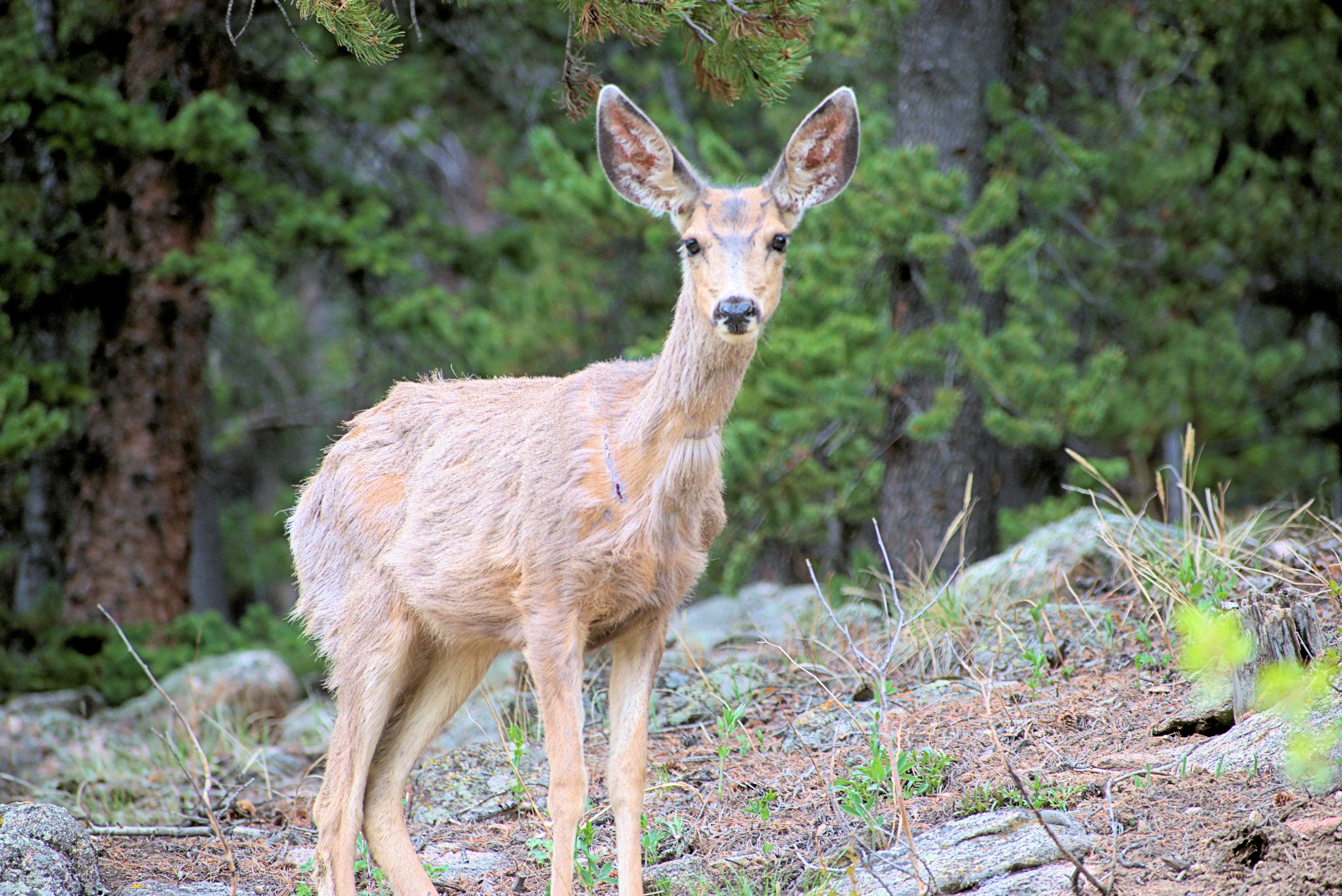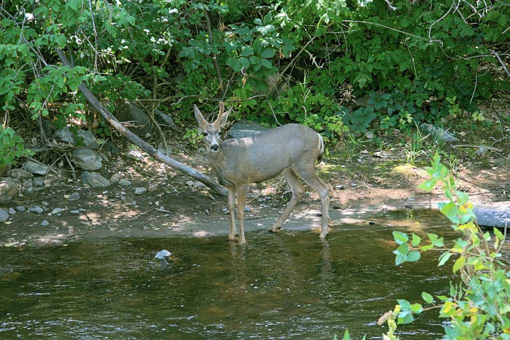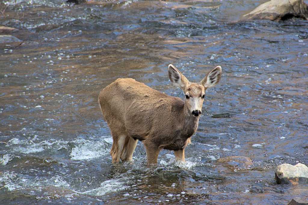 Deer do not have the communication skills like the bugling of their cousins the elk. But they do something called blowing before they flush from danger. They breath heavily when distressed to alert other deer that are in the area. Once they do that they get out of Dodge very quickly. Deer do not generally use water as a defensive or escape mechanism. They possess speed and agility skills that they use for escaping danger, running through water diminishes those skills. I have observed deer while on WaltAbout from the plains(whitetails) to the tree line of Mount Evans. I have seen exactly one mule deer buck above the tree line he was agitated and was quickly making his way back down the mountainside. I found that the deer will graze until about 10am and then they will retreat to forested areas to keep cool and rest. Scat animal fecal droppings is a great tool for finding wildlife the more you are out in the wild the more you will become familiar not only are wildlife in the area but what ones are using it. As with all animals don’t get lulled into a sense of comfort with deer if they feel threatened or crowded they will charge.
