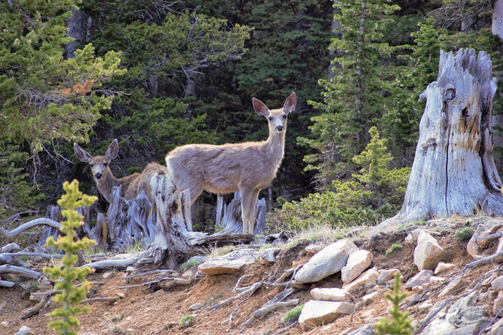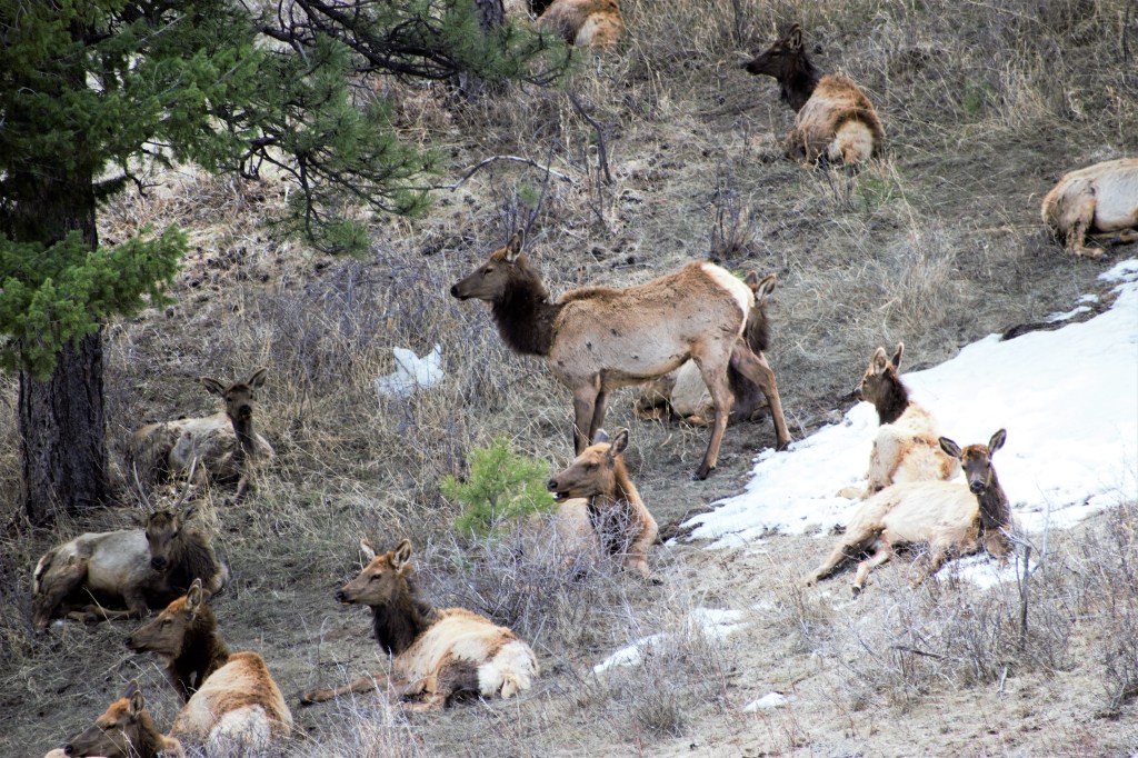 Cervidae also called deer are mammals that are hoofed and the males have antlers, with one exception being a reindeer found in Asia. Mule deer, whitetail deer (east of the I-25), elk, antelope and moose are all members of the cervidae family that I have seen while on WaltAbout. Cervidae and bovidae are both herbivorous mammals that only consume vegetation. They have the ability to forage, later regurgitate and then rechew the food. Animals that do this are called ruminants. Ruminants have four stomach chambers that facilitate this process and can be found all over the world except Antarctica. Cervidae males have antlers which will have tynes and are shed annually. With bovidae both males and females have smooth horns with no branching or tynes they are permanent and will not grow back if broken.