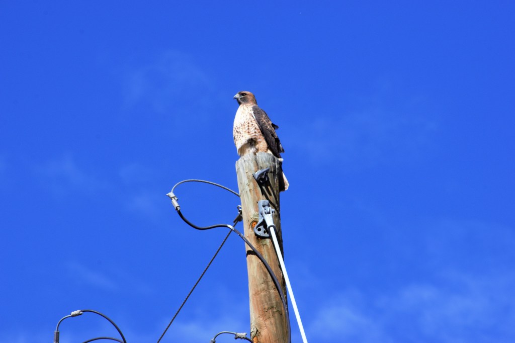 I have been very fortunate to see the amount and variety of Raptors while on WaltAbout. Weather permitting on any given day, I can see these birds of prey a very unique category of birds. This group of avians share a lot of similar traits. They prefer to take their prey live, fly to a place of safety where they then will kill and consume. The raptors are able to do this because of the strong talons that they have. These birds also have keen vision although some like owls who have those big eyes have additional advantages to catch their prey at night. If prey is not plentiful they will consume carrion. Their beaks are sharp and can tear apart just about anything with fur, fins, or feathers.